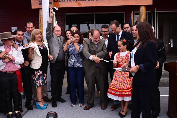 El presidente del Banco Estado, Jorge Rodríguez Grossi, y el alcalde de Hualaihué, Freddy Ibacache, junto a la comunidad y con la presencia de autoridades regionales y locales, como el gobernador de la provincia de Palena, Carlos Salas y la diputada Jenny Álvarez, inauguraron la primera sucursal bancaria en la comuna.