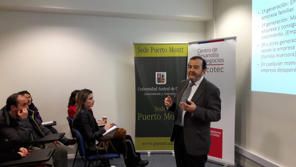 El Dr. Juan Hernangómez Barahona, Doctor en Economía de la Empresa por la Universidad de Valladolid y quien es profesor Catedrático en Organización de Empresas de la misma Universidad estuvo presente en Puerto Montt para dictar un seminario gratuito y abierto, enfocado a las familias empresariales de la zona, instancia generada por la Escuela de Ingeniería Comercial de la Universidad Austral de Chile Sede Puerto Montt y el Centro Desarrollo de Negocios Puerto Montt.