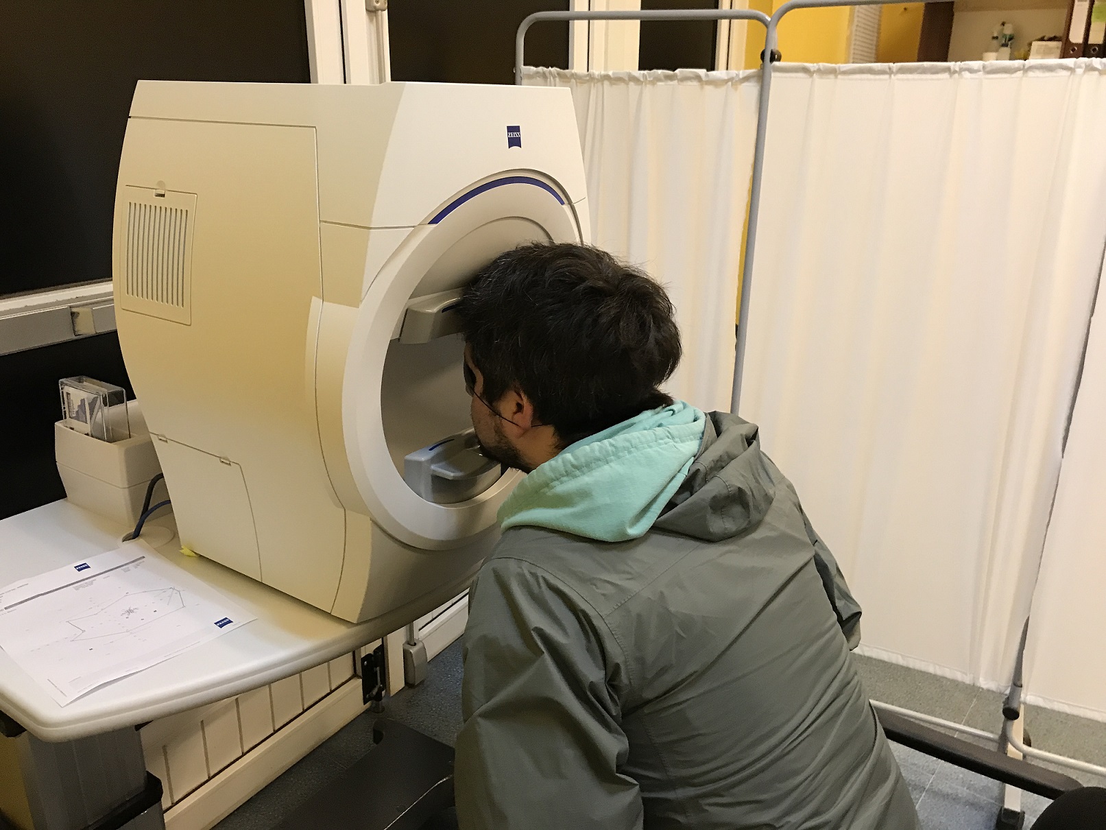 Sebastián Bórquez, tecnólogo médico encargado de la Unidad de Atención Primaria Oftalmológica (UAPO), explicó que el campimetro visual computarizado, evalúa el campo visual de los pacientes, es un examen que se pide para descartar enfermedades de glaucomatosis, como estudios o como pesquisa. Actualmente hay 90 usuarios en atención primaria con esta patología, y están en tratamiento; y ellos deben hacerse cada cierto tiempo el examen y evaluar el tratamiento. Antes debíamos derivar al Hospital. Ahora; todo paciente con sospecha le podemos hacer todos los exámenes, no es necesario derivarlos, sino, hacer toda la batería de exámenes.