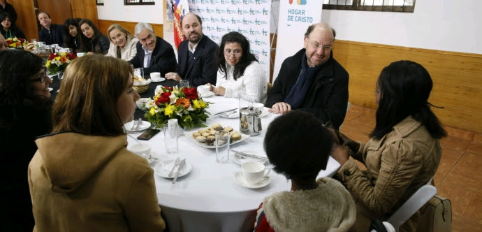 El mandatario, junto con la Primera Dama y el titular de Desarrollo Social, asistió a una liturgia en la tumba del santo chileno y compartieron un desayuno con personas acogidas a los programas del Hogar de Cristo. En la ocasión, el jefe de Estado destacó también el nuevo Ministerio de la Familia y Desarrollo Social y la Red Clase Media Protegida.