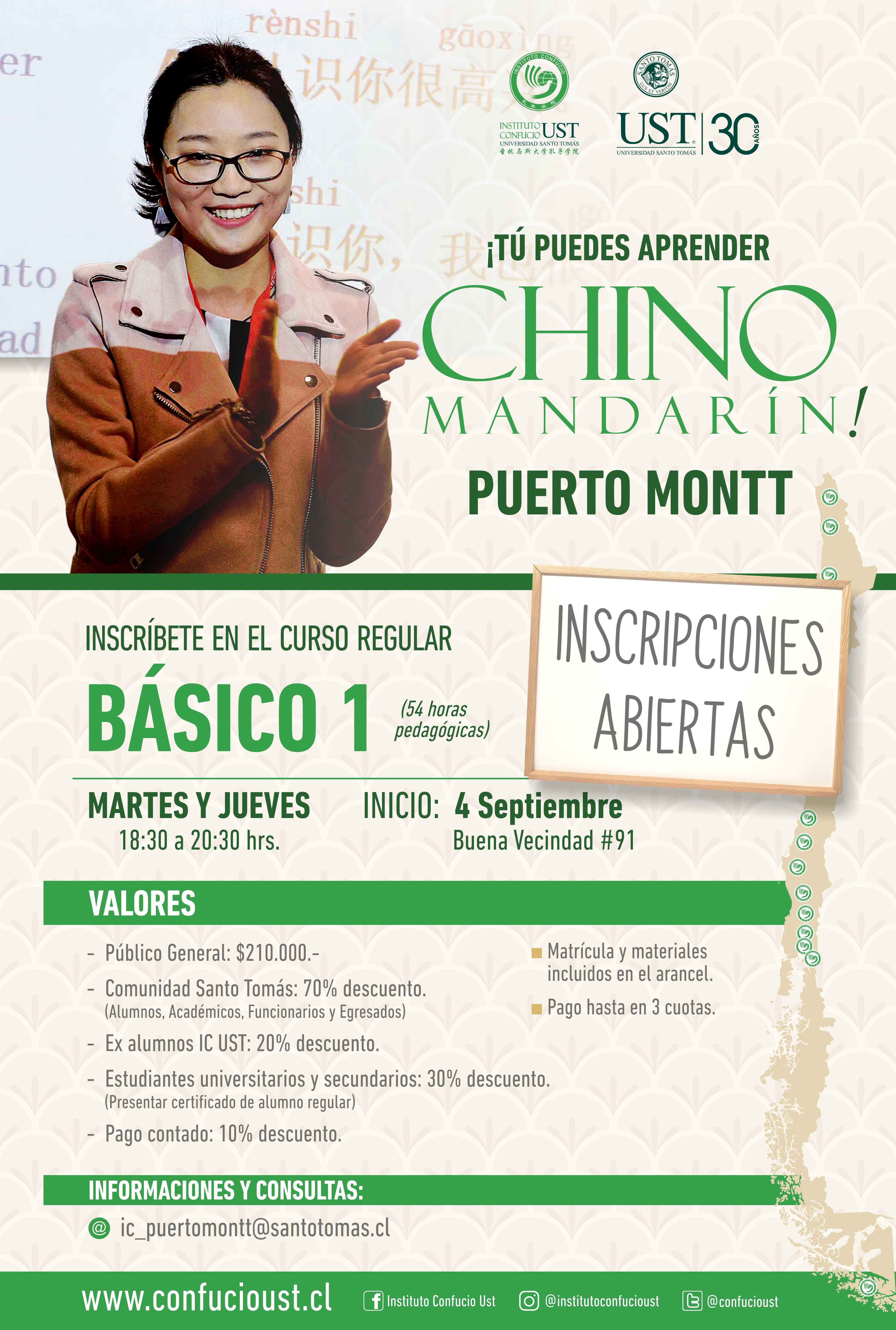 Este segundo semestre, a partir del 4 de septiembre, se comenzará a impartir una nueva versión del curso en su nivel básico 1 por lo que los interesados en ampliar el desarrollo del aprendizaje del idioma y acceder a la posibilidad aprender una segunda lengua pueden realizar sus inscripciones o consultas al correo electrónico IC_PuertoMontt@santotomas.cl.