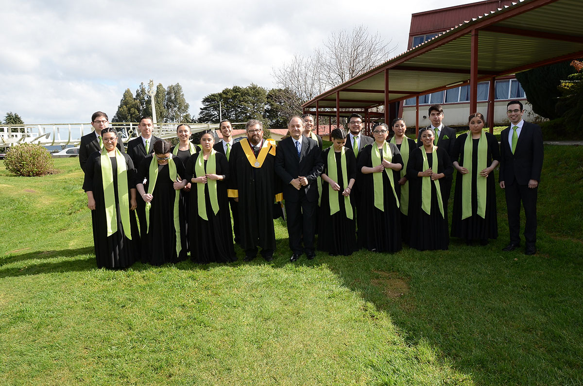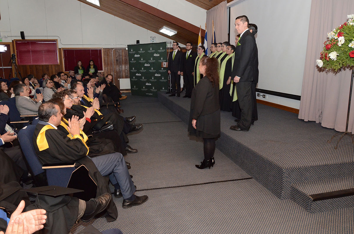 Luego fueron recibidos en el Aula Magna por el Coro de Cámara de la Casa de las Artes y la Cultura  (dirigido por la profesora Marita Cortés), que interpretó la canción universitaria Gaudeamos Igitur y el Himno de la Universidad Austral de Chile.