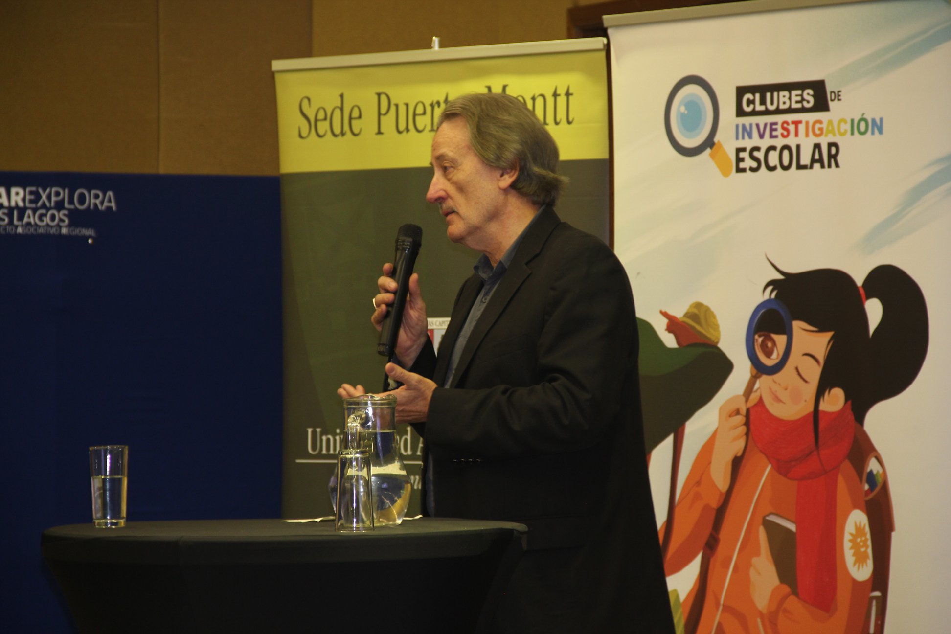 Durante la jornada también se entregó el reconocimiento “Espíritu Explora” a los estudiantes Pablo Oyarzo e Ignacio Mansilla, junto al docente Eduardo Olivares, del Liceo de Alta Exigencia Paulo Freire de Quellón y además estudiantes y docentes tuvieron la posibilidad de compartir con los científicos/as y participar en la Charla: ¿para qué es importante la ciencia y la arqueología?, dictada por el reconocido arqueólogo Dr. Tom Dillehay, académico de la Escuela de Arqueología de la Universidad Austral de Chile Sede Puerto Montt.