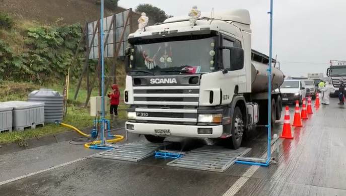 Desde el pasado 20 de marzo, la industria salmonera ha estado apoyando las distintas barreras sanitarias instaladas en la Isla de Chiloé, trabajando colaborativamente con la autoridad sanitaria de la región y poniendo a disposición de las cuadrillas de personal encargado de la sanitización de vehículos, alcohol gel, mascarillas, guantes, oficinas modulares y diferente infraestructura para llevar a cabo los controles preventivos necesarios en Chacao y Pargua.