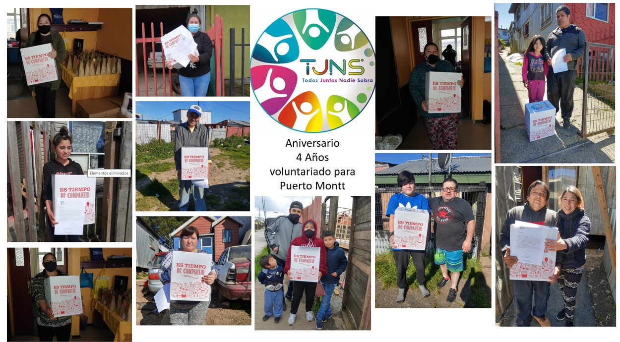 En el marco de su 4° Aniversario la “ONG Todos Juntos Nadie Sobra”, está llevando a cabo una serie de actividades para favorecer a los cientos de familias a las que han apoyado por tanto tiempo, es así que, durante la semana recién pasada, voluntarios/as entregaron 75 canastas de alimentos a familias de 5 establecimientos educaciones de la comuna, se trata de familias de estudiantes de las escuelas Las Camelias, Pablo Neruda, Cayenel, Bellavista y también a familias de Fundación Coanil.