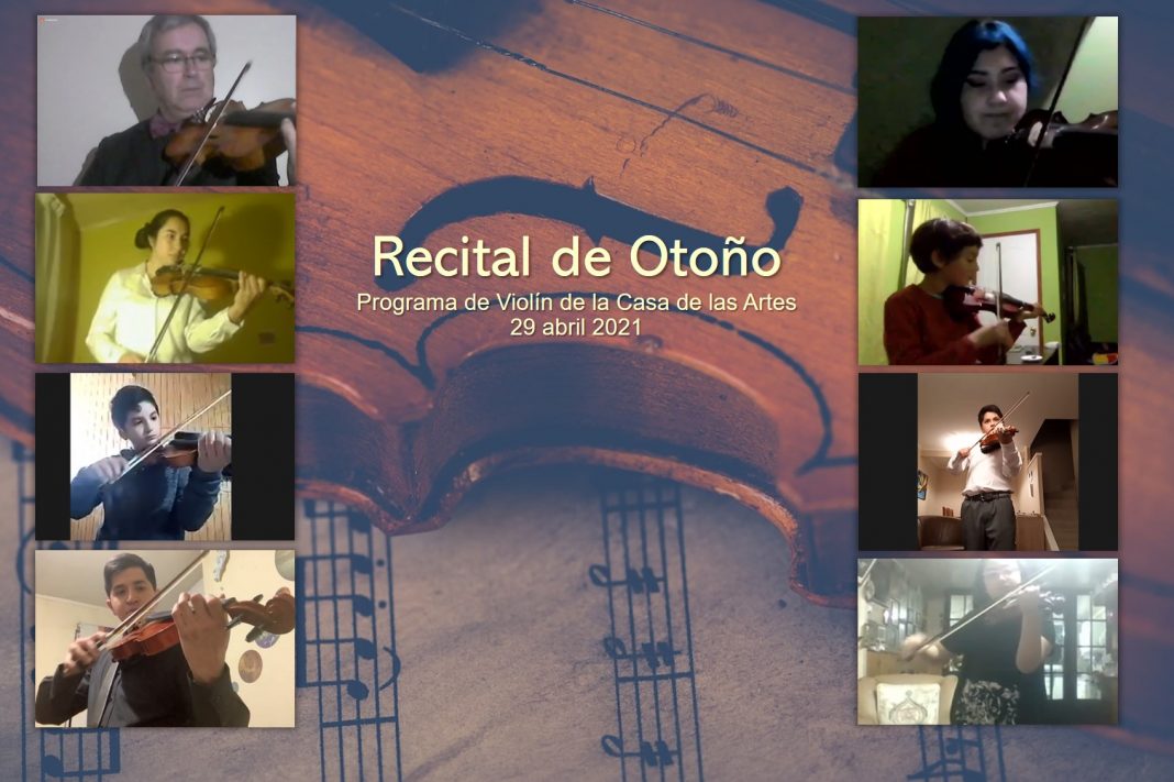 El día 29 de abril a las 19.00 hrs. por plataforma Zoom para todo público, se realizó el “Recital de Otoño” de los alumnos del Programa de Violín de la Casa de las Artes de la Universidad Austral de Chile Sede Puerto Montt dirigido por el profesor René Santibáñez, tuvo como objetivo mostrar los aprendizajes de los estudiantes, al mismo tiempo de generar una instancia de sociabilización dado el contexto de pandemia.