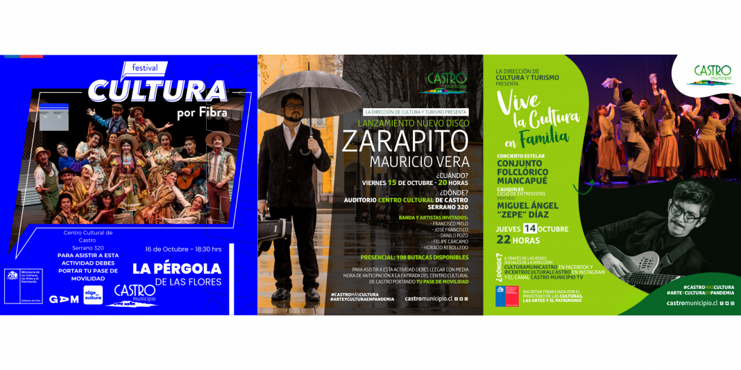 El lanzamiento de “Zarapito” de Mauricio Vera, la emisión de un nuevo capítulo de “Vive la Cultura en Familia” y el streaming en vivo de “La Pérgola de las Flores” son las actividades a las que podrá acceder en vivo o vía online la comunidad castreña.