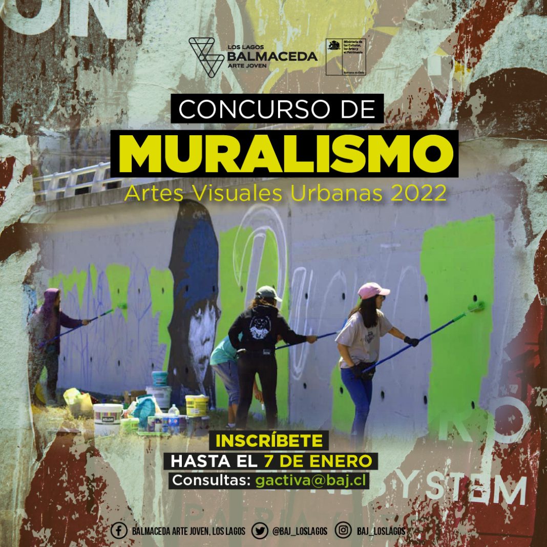Finalmente se informó que la postulación al concurso de Artes Visuales Urbanas #Muralismo2022, para pintar un mural colaborativo en Pelluco, cierra este viernes 7 de enero y para participar se debe ingresar al siguiente enlace y completar los datos https://bit.ly/ConcursoArtesVisuales2022