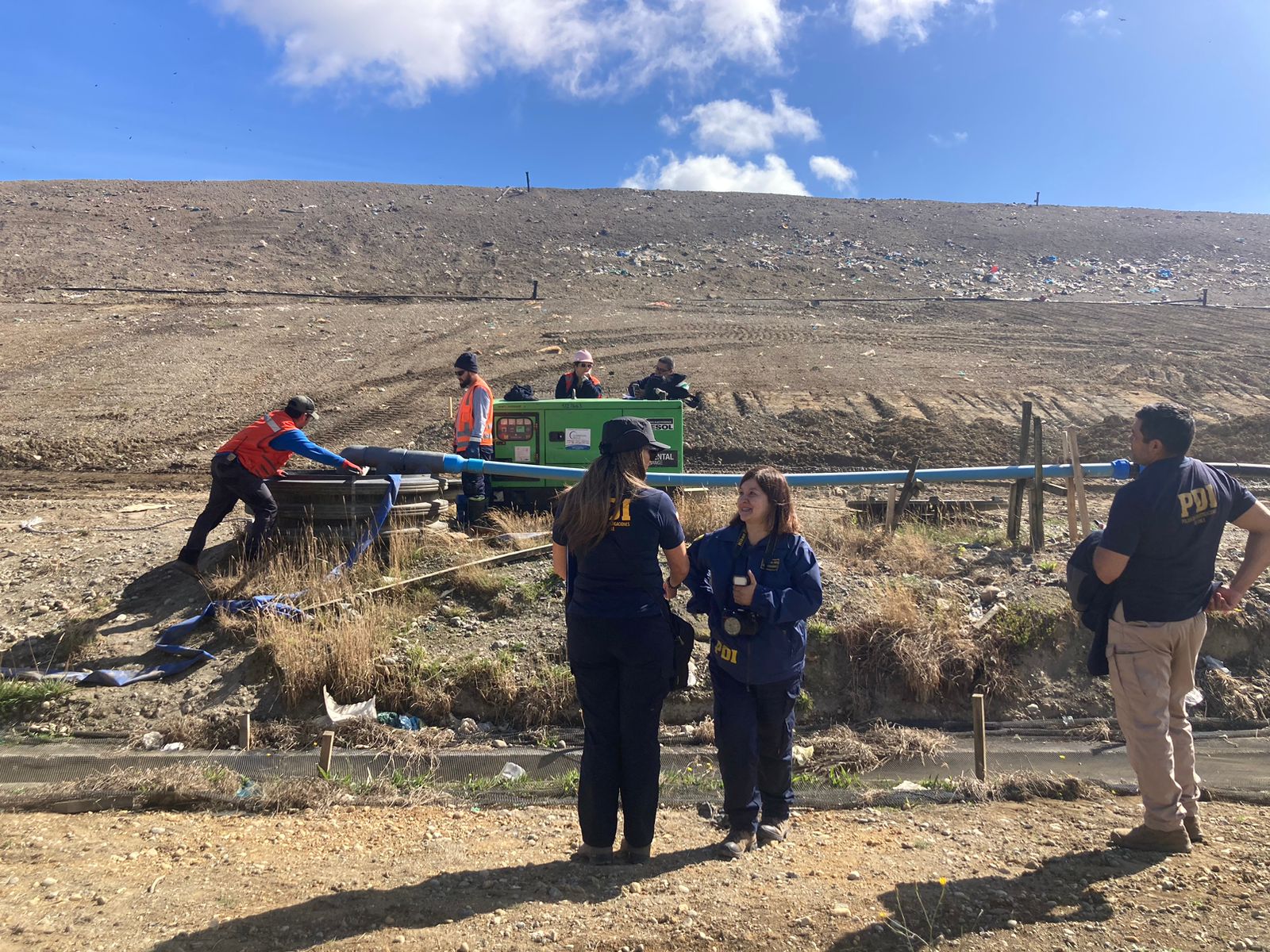 Con fecha de hoy, la Brigada Investigadora de Delitos Contra la Salud Pública y Medio Ambiente (BIDEMA) de la Policía de Investigaciones realizó una visita al Relleno Sanitario La Laja. Dentro de las diligencias realizadas, tomó declaraciones a representantes de la empresa investigada, elaboró muestras en el área en donde se desarrolló la descarga ilegal y verificó la forma en que fueron derramados los residuos líquidos sin tratamiento previo en la quebrada aledaña a estas instalaciones. Las diligencias buscan determinar las causas y responsables del incidente, incluyendo la revisión de las bombas, mangueras, cámaras, tuberías y sistema de tratamiento de lixiviados del relleno sanitario.