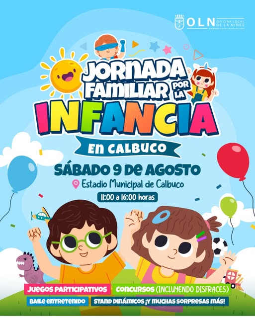 Este sábado 9 de agosto, te esperamos en la Jornada Familiar por la Infancia en Calbuco, organizada por la Oficina Local de la Niñez