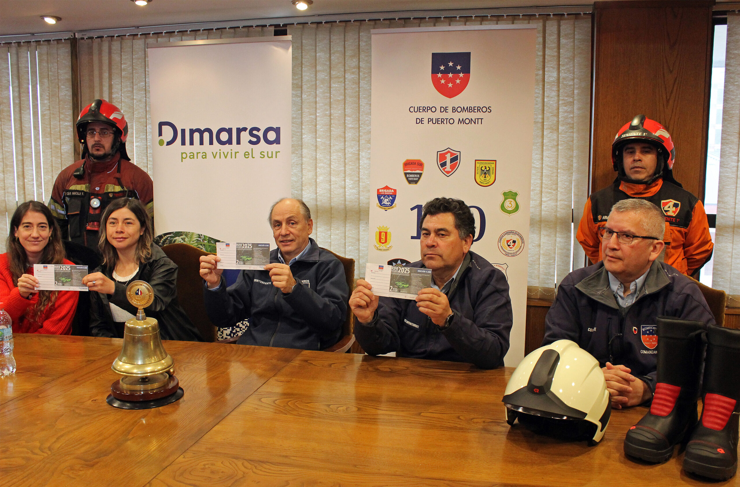 La presentación del sorteo fue encabezada por el superintendente Jaime Jonshon Cárdenas, acompañado por el comandante Roberto Angulo Alarcón, el vicesuperintendente Jaime Paredes Ruiz, y ejecutivas de la multitienda Dimarsa, quienes destacaron la importancia de esta campaña para fortalecer la seguridad de los voluntarios durante la respuesta a las emergencias que se registran a diario en Puerto Montt.